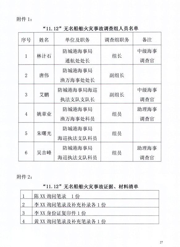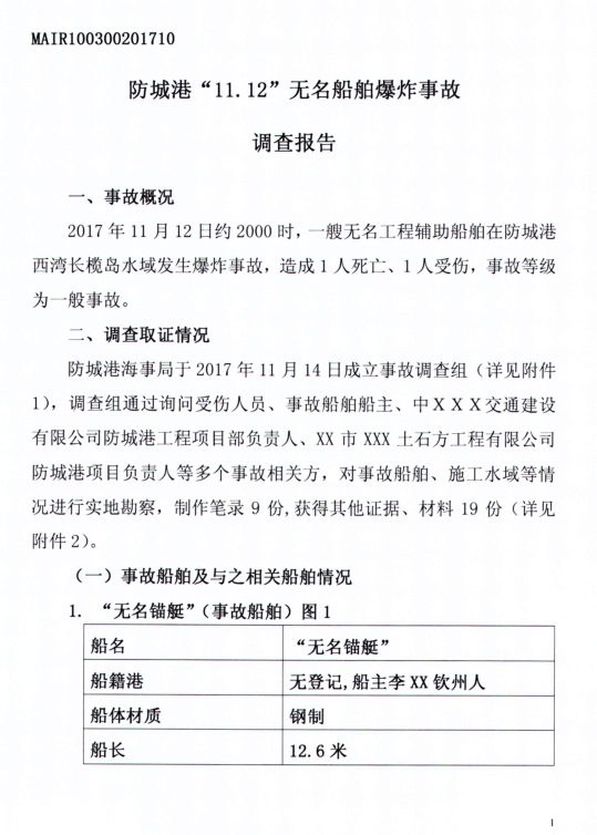 防城港“11.12“無(wú)名船舶爆炸事故調(diào)查報(bào)告