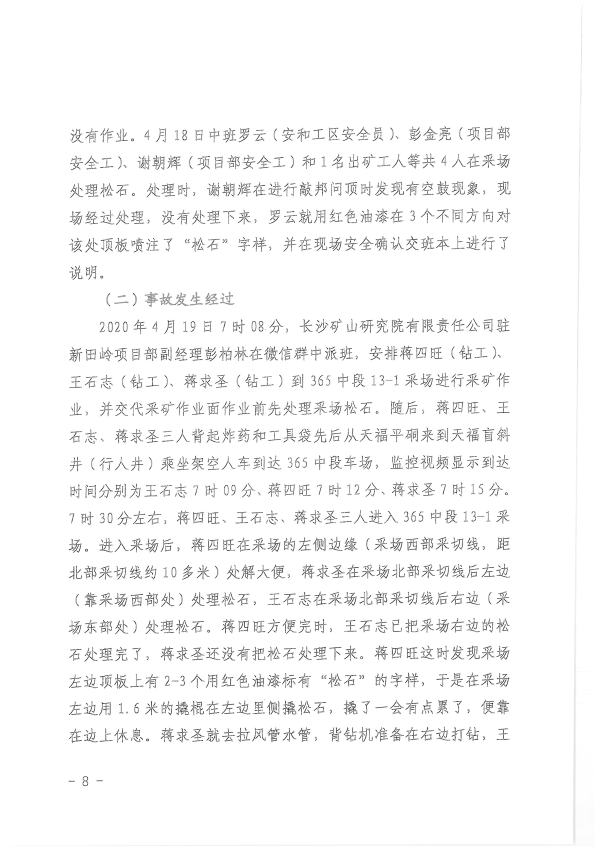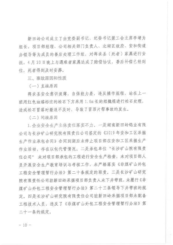 湖南新田嶺鎢業(yè)有限公司“4?19”冒頂片幫事故調(diào)查報(bào)告