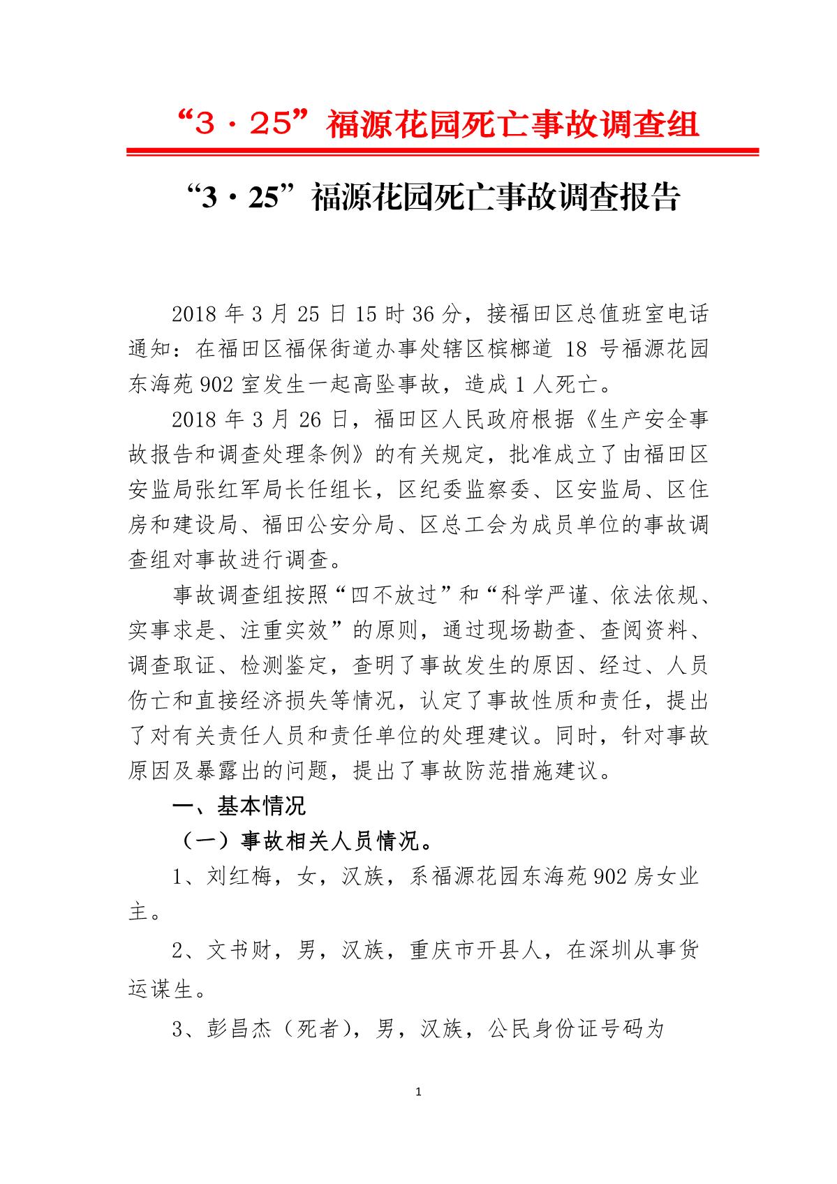 “1.18”福田區(qū)禮園工程項目死亡事故調(diào)查報告