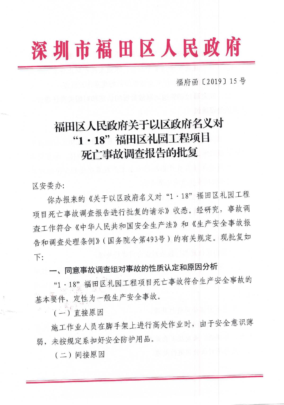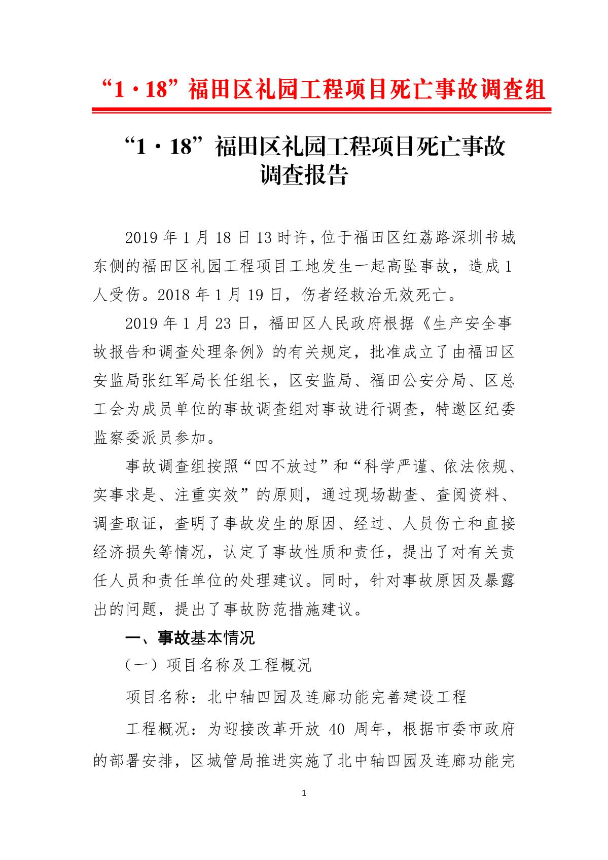 “1.18”福田區(qū)禮園工程項目死亡事故調查報告