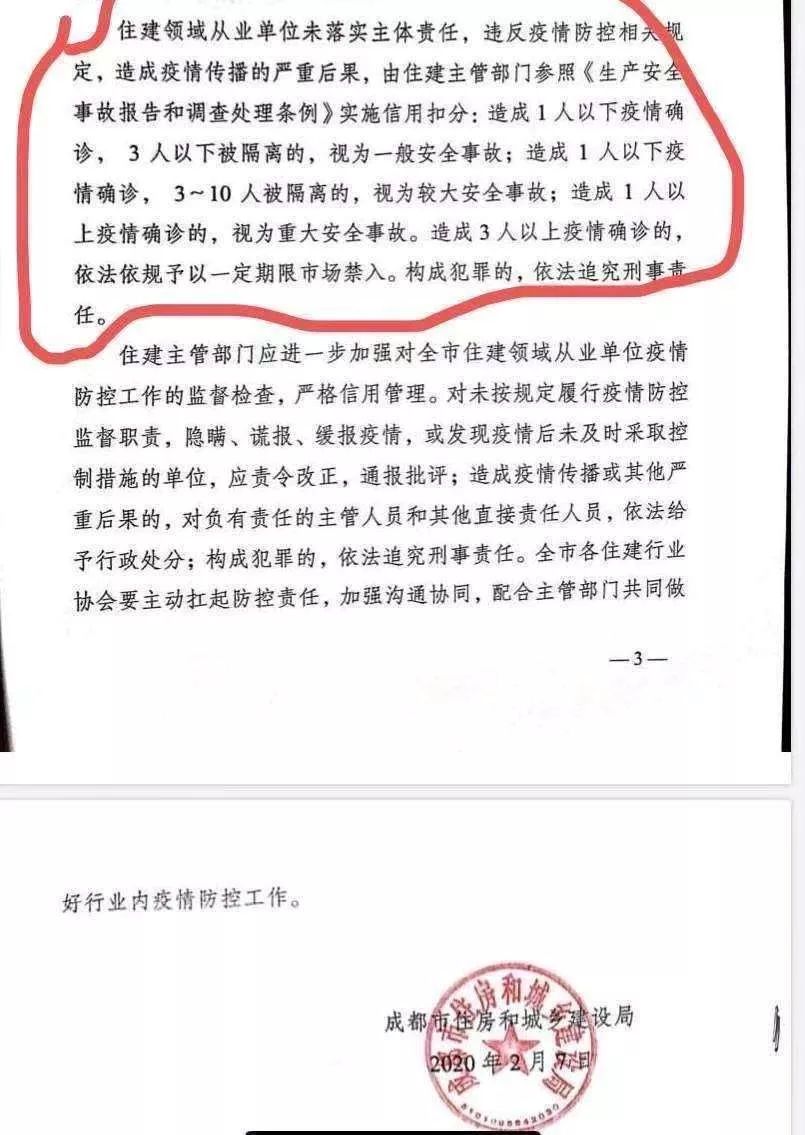 2月7日,成都市住房和城鄉(xiāng)建設(shè)局發(fā)布了《關(guān)于將新型冠狀病毒感染的肺炎疫情防控工作納入住建領(lǐng)域市場(chǎng)主體信用評(píng)價(jià)管理的通知》。