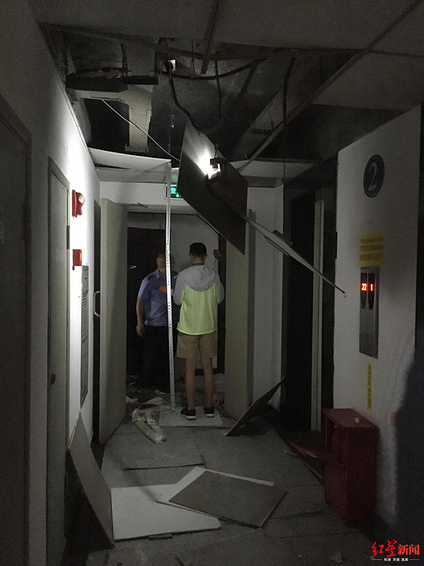 紅星新聞?dòng)浾呲s到現(xiàn)場(chǎng)發(fā)現(xiàn),該住戶家中一片狼籍,防盜門整體已經(jīng)彎曲,除了屋內(nèi),外面的過道和一戶鄰居家中,也被震得七零八落。