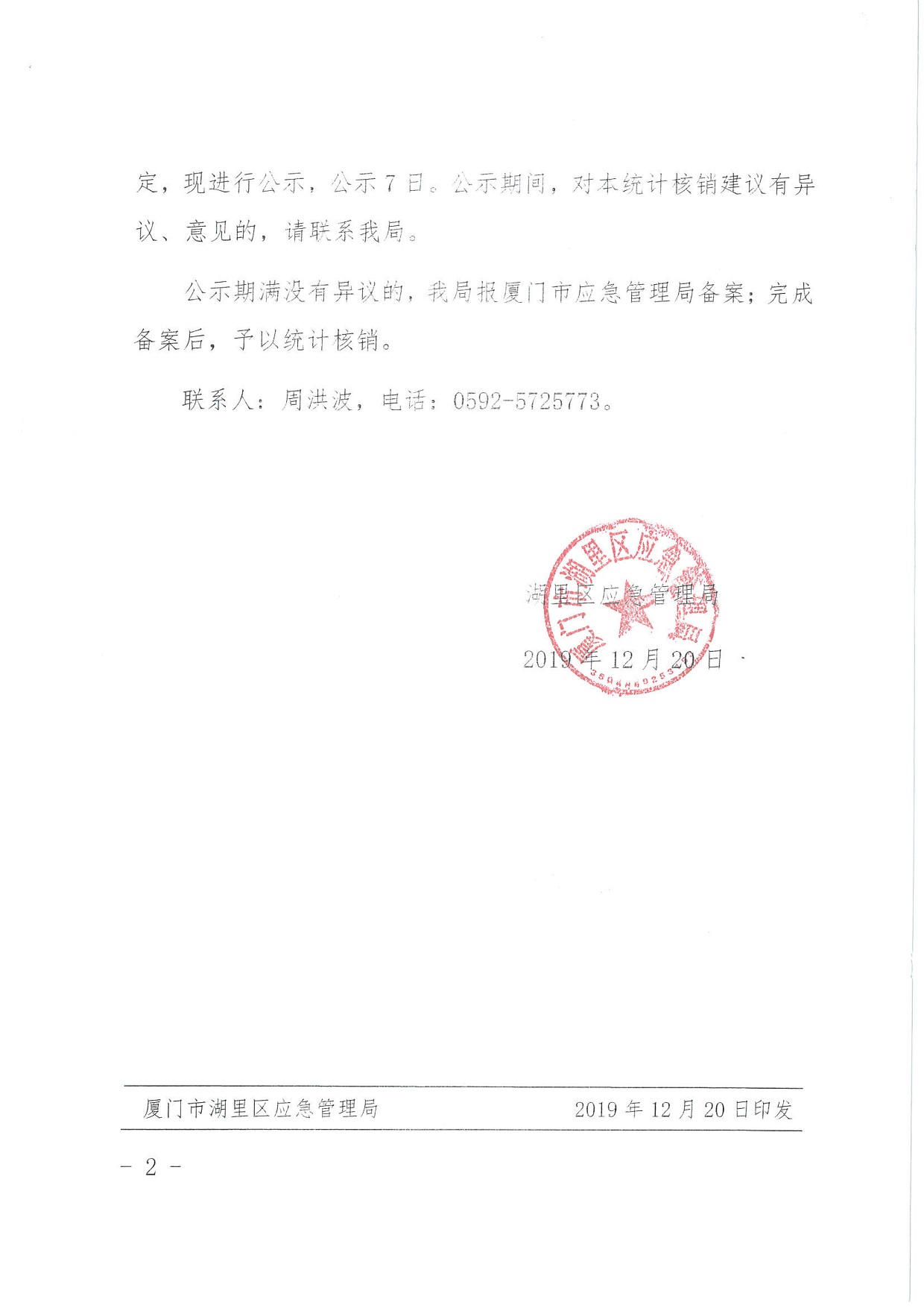 湖里區(qū)應(yīng)急管理局關(guān)于建議對(duì)“4·8”廈門德易達(dá)土石方有限公司亡人事故進(jìn)行統(tǒng)計(jì)核銷的公示
