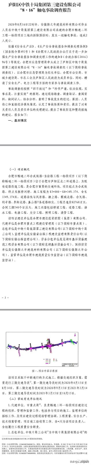 2020年8月16日22時許,安徽斯之年建筑材料有限公司作業(yè)人員在中鐵十局集團第三建設有限公司承建的合肥市暢通二環(huán)工程一標段項目工地內(nèi)拆除圍擋時,發(fā)生一起觸電事故,造成2人死亡。