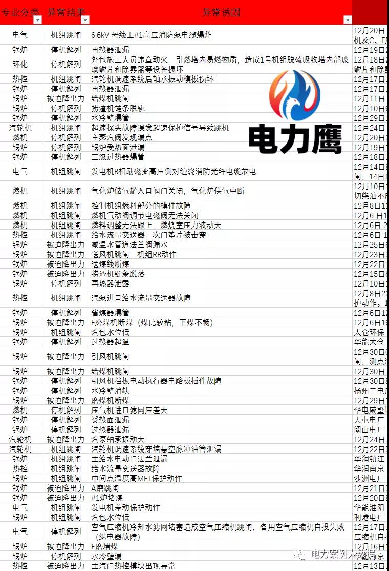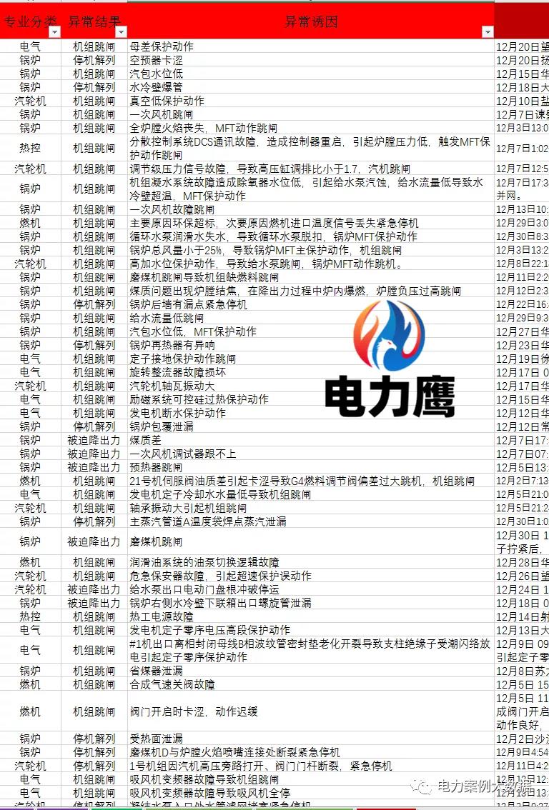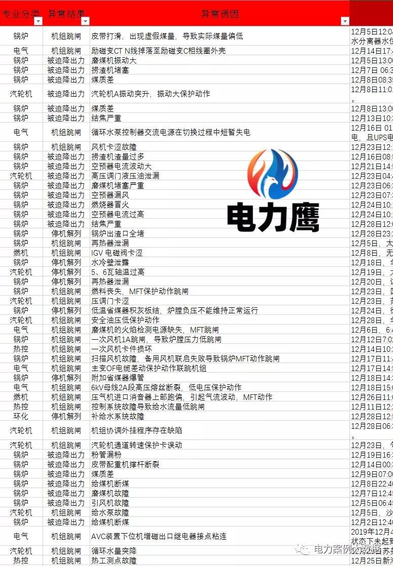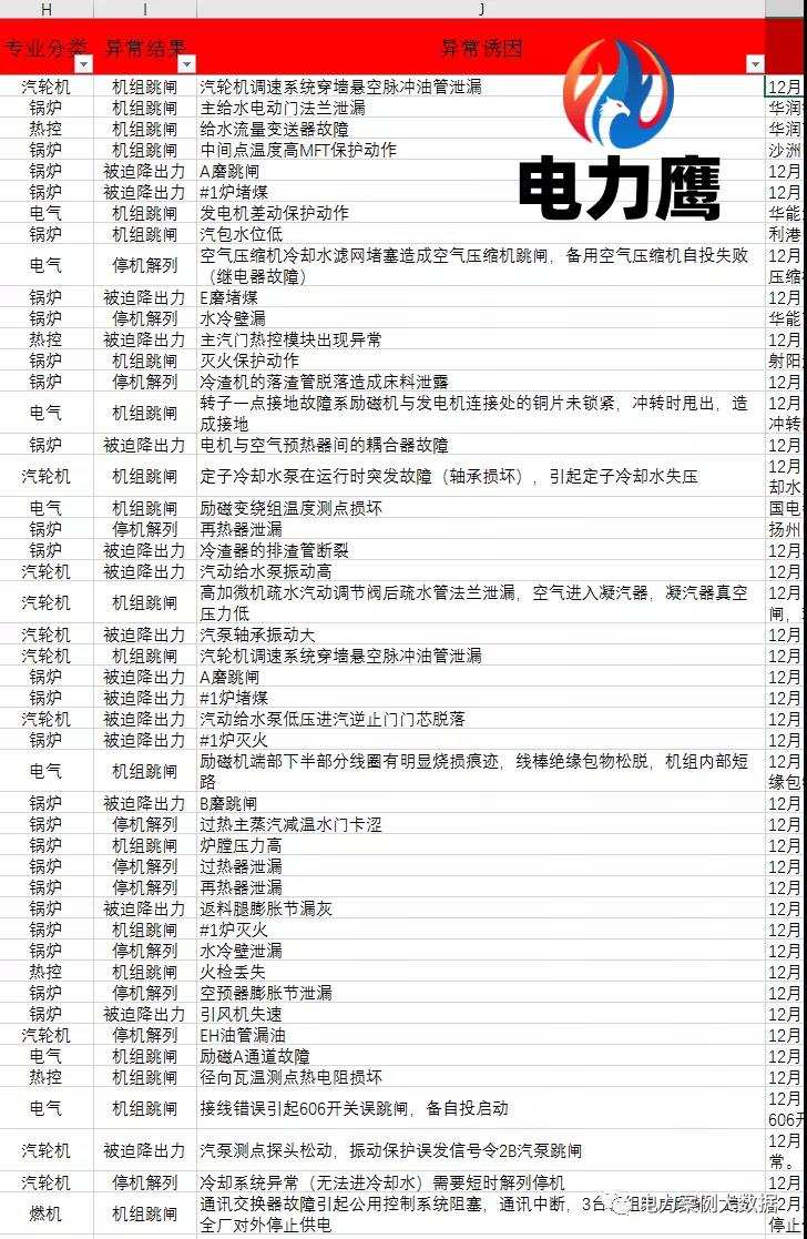 歷年12月電廠異常事故統(tǒng)計(jì)數(shù)據(jù)