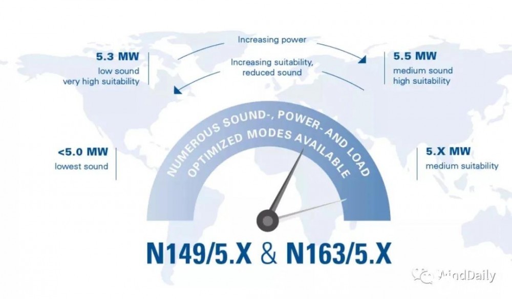 N149/4500 機型曾是Nordex主打機型。為了跟上市場競爭的腳步,Nordex 如今也正朝著大兆瓦、大葉輪趨勢邁進。今年Nordex也推出了6.X MW陸上風電機組,葉輪也擴大到163米。