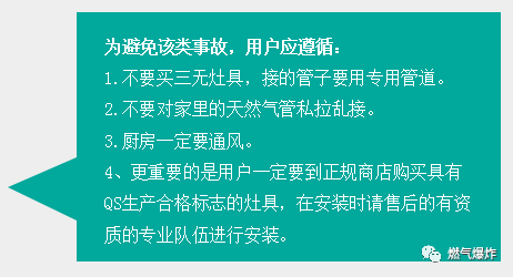 2012年7月27日重慶奉節(jié)縣一居民家發(fā)生天然氣意外泄漏事故,發(fā)生事故的居民家中所有家具和電器都被燒毀,窗戶的玻璃已被震爛。爆炸造成一家6人燒傷,最終一人搶救無效死亡。據(jù)網(wǎng)上報道爆炸是由于天然氣管道與輸氣軟管之間存在縫隙,導(dǎo)致天然氣泄漏引發(fā)的。在該戶家中,發(fā)現(xiàn)新買的燃?xì)庠罹?,是個三無產(chǎn)品。該戶的燃?xì)夤艿?,是由兩根軟管接起來的,一根軟管不夠長,中間還用一根硬塑料管連了起來,還使用了膠水來粘接,這是非常危險的作法,連接的塑料管是硬的,天然氣完全可能因連接處泄漏出來。也許是用戶點了火,也許只是開了某一種電器的開關(guān),就引起了天然氣爆炸,隨后的火焰擴(kuò)散,屋內(nèi)東西全部燒毀。