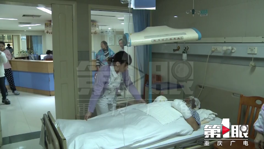 大家用剪刀把張紹龍著火的衣服脫了下來(lái),由于燒傷嚴(yán)重,張紹龍被送往了西南醫(yī)院燒傷科治療。經(jīng)醫(yī)生診斷,張紹龍全身燒傷面積達(dá)9%,深二度燒傷,受傷最嚴(yán)重的部位是臉和雙手,需手術(shù)植皮治療。