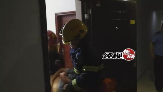 四分鐘后大門被破開,房間彌漫大量燃?xì)?,消防?duì)員丁煥章立即沖了進(jìn)去,他在廚房找到了被困的女業(yè)主。