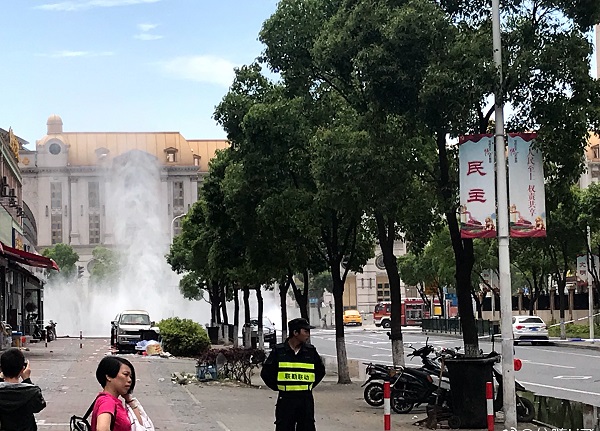 據(jù)目擊者介紹,事發(fā)時(shí)看到和炯路三彩路噴出大量白色煙氣,氣體噴射高度約有10米,氣體噴出時(shí),發(fā)出巨大的“嗤嗤”聲,附近街道上彌漫著煤氣味。接到報(bào)警后,相關(guān)部門迅速到場,民警在事發(fā)地附近多個(gè)路口拉起警戒線,并疏散圍觀市民。消防隊(duì)員鋪設(shè)水帶,并在泄漏點(diǎn)附近打起水幕,防止現(xiàn)場氣體遇火星后發(fā)生發(fā)生危險(xiǎn)。燃?xì)夤緭屝奕藛T則尋找該管道閥門,約1小時(shí)后,閥門被關(guān)閉,氣體停止噴射。