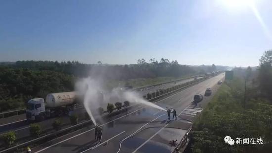 將近20噸的天然氣一旦發(fā)生爆炸后果將不堪設(shè)想,消防官兵立即組織將現(xiàn)場群眾疏散至2公里以外,同時(shí)交警部門對高速路雙向管制,嚴(yán)禁任何車輛和人員接近。這場大火一直燒到了上午7點(diǎn)才漸漸停止,這時(shí)貨車已經(jīng)燒成廢鐵,天然氣罐車的尾部也被燒塌。高速路上散落了一地的汽車零部件,消防官兵先是對現(xiàn)場可燃?xì)怏w和有毒氣體進(jìn)行監(jiān)測,隨后出動(dòng)水槍不斷對兩車車體進(jìn)行冷卻。一小時(shí)后現(xiàn)場明火基本被撲滅,罐車罐體溫度也下降到40℃以下,路政部門隨即將追尾兩車進(jìn)行分離。到了上午10點(diǎn)左右,高速公路恢復(fù)了暢通。罐車司機(jī)表示,當(dāng)時(shí)他是正常在高速公路上行駛。